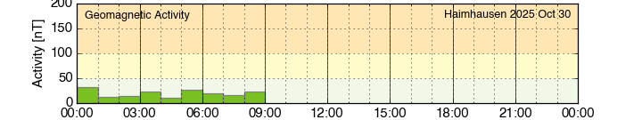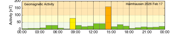 up to 1500 nT can occur. Depending on the disturbance level, the magnetogram uses different scales identified by the background color