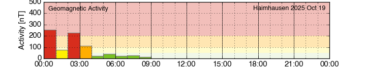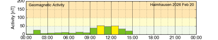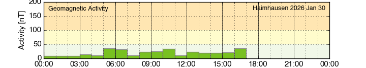 up to 1500 nT can occur. Depending on the disturbance level, the magnetogram uses different scales identified by the background color