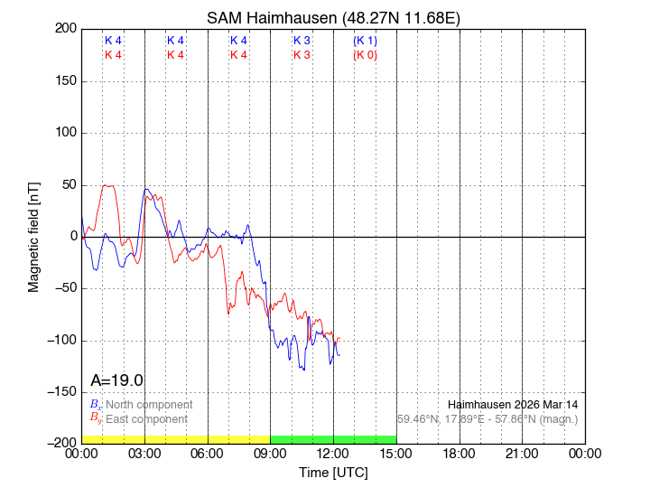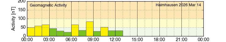 up to 1500 nT can occur. Depending on the disturbance level, the magnetogram uses different scales identified by the background color